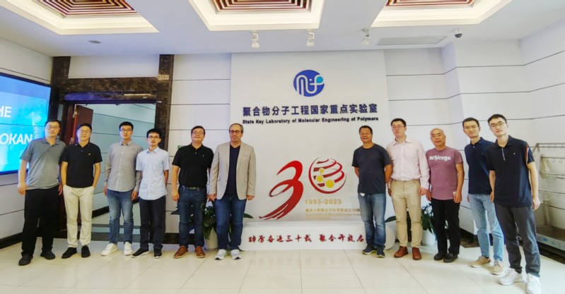 随后,系主任彭慧胜、青年教师代表陈茂、潘翔城、冯雪岩、桑玉涛、千海、曾裕文和博士生代表黄瀚闻,分别以“纤维材料和器件”“可控自由基共聚合成定义明确的含氟聚合物”“实现可持续性的精确聚合物合成”“复杂软物质组装体中结构缺陷的3D研究”“手性如何打开材料新特性之路”“光和/或机械响应材料的发展”“二维聚合物:新的机遇和挑战”和“利用剪切诱导组装技术实现光子晶体薄膜的大规模制备”为题作报告,展示了各自研究领域的前沿成果。苹果公司和松井新材料公司的专家们对老师们的科研工作显示出高度关注和重视,三方就感兴趣的研究领域展开了热烈讨论。