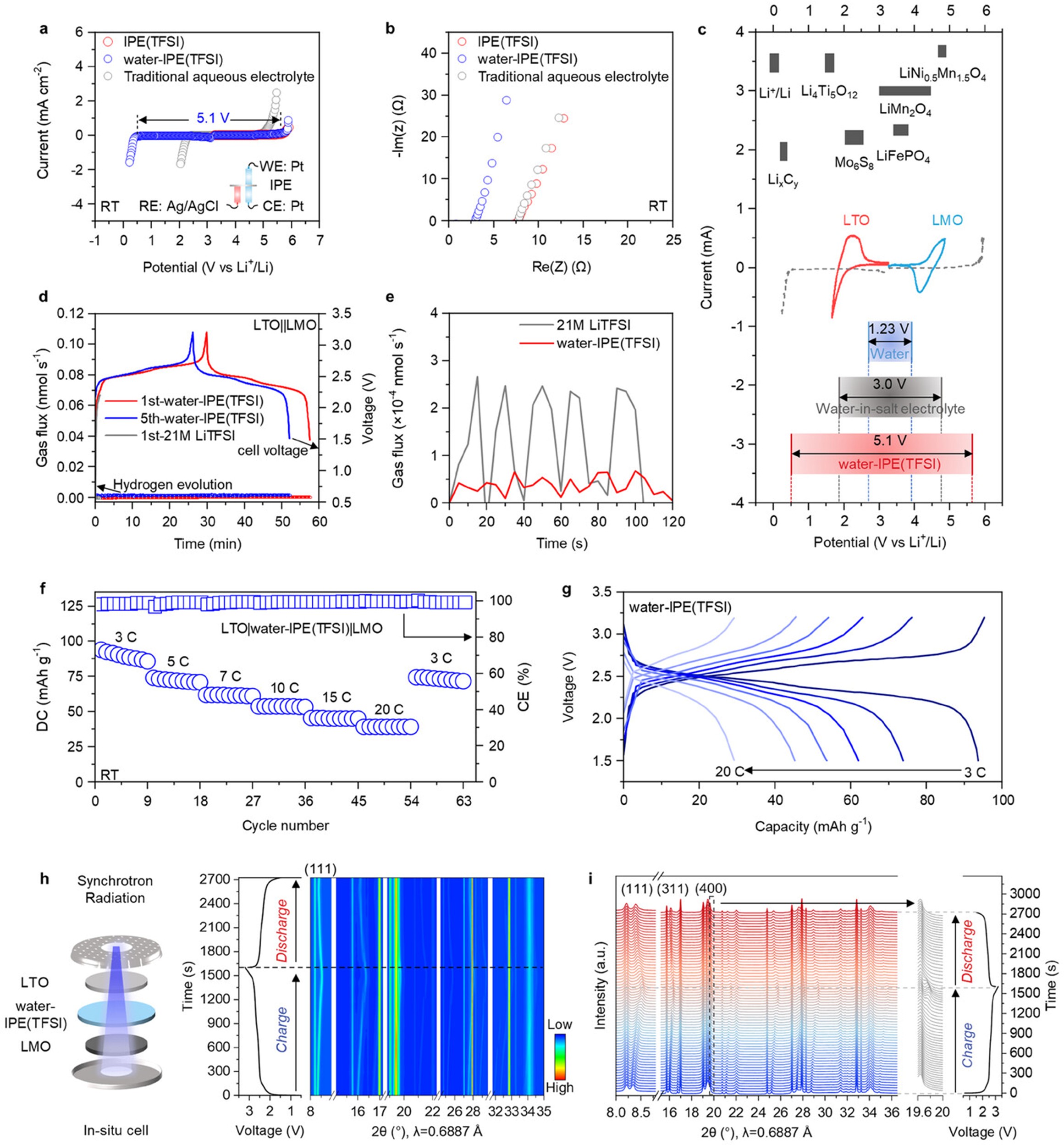图2.通过电化学分析和原位同步辐射广角X射线衍射表征,探索water-IPE(TFSI)在ALIBs中的应用潜力。