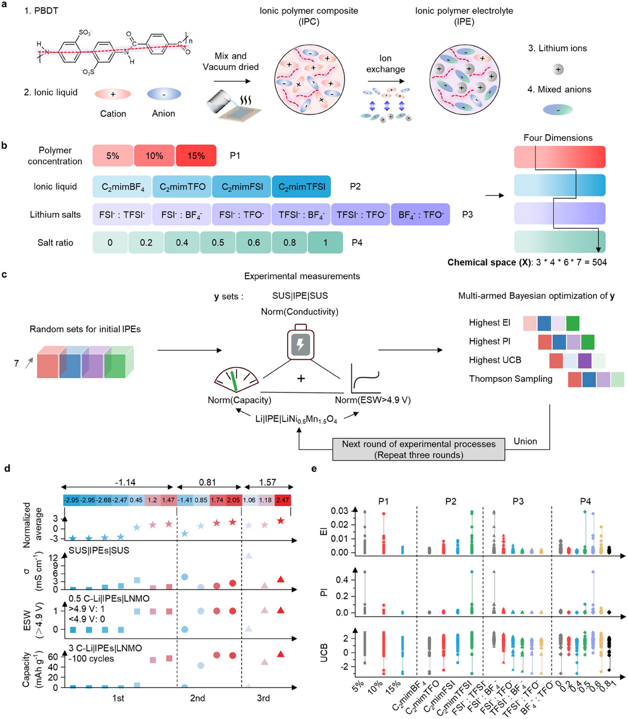 图1.通过闭环和多目标主动学习对离子聚合物电解质(IPE)进行开发和优化。