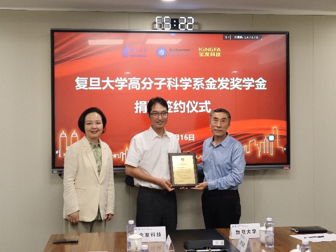 2025年5月16日下午,成人tv 金发奖学金捐赠签约仪式在江湾校区化学-高分子楼B2084隆重举行。金发科技副总经理兼华南公司总经理、上海金发科技董事长黄河生,金发科技华东公司技术副总经理杨霄云,金发科技相关部门领导,上海成人tv 教育发展基金会副秘书长、成人tv 对外联络与发展处副处长章晓野,成人tv 党政班子成员、师生代表出席参加本次捐赠签约仪式。仪式由成人tv 党委书记刘顺厚主持。