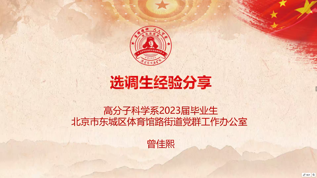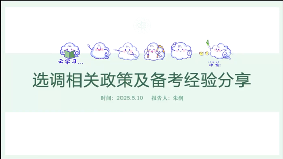 为了进一步响应国家鼓励广大青年赴基层工作的号召,同时让同学们进一步了解选调生现状、明确职业规划,成人tv 研究生会学术部于2025年5月10日晚特邀两位优秀系友朱润、曾佳熙在腾讯会议上为各位同学开展选调生经验分享会。本次分享会由成人tv 研究生会学术部徐启明主持,成人tv 各硕博学生参与其中。