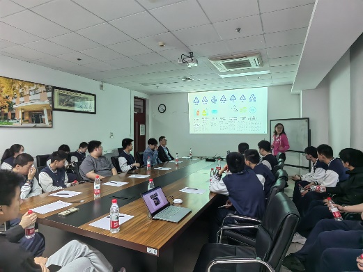 在座谈环节,首先黄霞芸老师以“无处不在的高分子”为题,生动介绍了生活中的高分子材料。黄老师从同学们手边的矿泉水瓶切入,介绍了常见的高分子材料如PET、PP、PS、PVC等在生活中的应用,让同学们感受到原来自己的手机、衣服、水杯等生活中常见的物品都有高分子的身影。随后, 黄霞芸老师和桑玉涛老师针对同学们感兴趣的“高分子科学在解决环境污染 ,能源危机等社会问题扮演着怎样的角色”、“油漆厂化工生产带来的污染及主流处理方式”以及“高分子科学对微电子技术发展是否有着关键作用”等问题进行回答。针对上述问题,黄老师从大家熟悉的奶茶吸管出发,讲述了可降解材料、吸附剂和二氧化碳还原等。桑老师针对油漆厂的污染及处理方式,从有机溶剂和固体污染等方面出发,给出相应处理方式。针对高分子科学对微电子技术的发展有何影响这一问题,桑老师着重讲解了光刻胶在芯片制造中的重要性,以及当今光刻胶的发展瓶颈,并以此鼓励同学们认真学习,努力解决我国“卡脖子”技术难题。