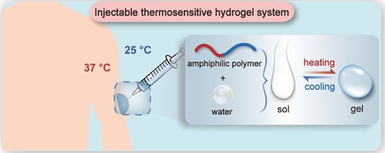 可注射的热致水凝胶通常由两亲性的嵌段共聚物构成,其在低温或室温下是自由流动的聚合物溶液,使得它们很容易通过简单的物理混合封装药物或细胞;而在注射入体内后,由体温触发的相变使得其在注射部位原位转变为半固体的水凝胶,成为药物释放的储库或细胞生长的支架。该综述聚焦于基于聚乙二醇(PEG)的可降解的热致水凝胶,包括PEG-聚酯嵌段共聚物热致水凝胶、PEG-聚多肽嵌段共聚物热致水凝胶以及聚有机磷腈热致水凝胶等。该文对于PEG基热致水凝胶的分子设计的原则、性能调节的途径、热致凝胶化的机理以及体内降解的机制进行了总结,对此类热致水凝胶在药物递送、组织修复、三维细胞培养以及术后防粘连等生物医学领域的应用进行概括,最后对热致水凝胶的未来发展提出了展望。该综述有望为其它热致水凝胶的设计及其在生物医学领域的应用提供有益的借鉴。