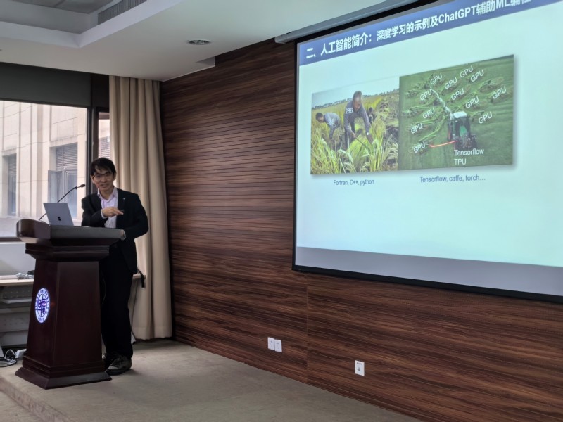 会上,李剑锋教授首先回顾了人工智能的历史与发展,并通过现场演示展现了ChatGPT在解决组合爆炸问题中的潜力。对比了手动编写代码、使用传统工具和借助ChatGPT编写代码的差异,直观展示了人工智能技术的强大能力。随后,李老师探讨了人工智能技术,特别是AI如何与高分子科学相结合,发挥其在高分子科学研究中的应用潜能。