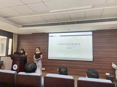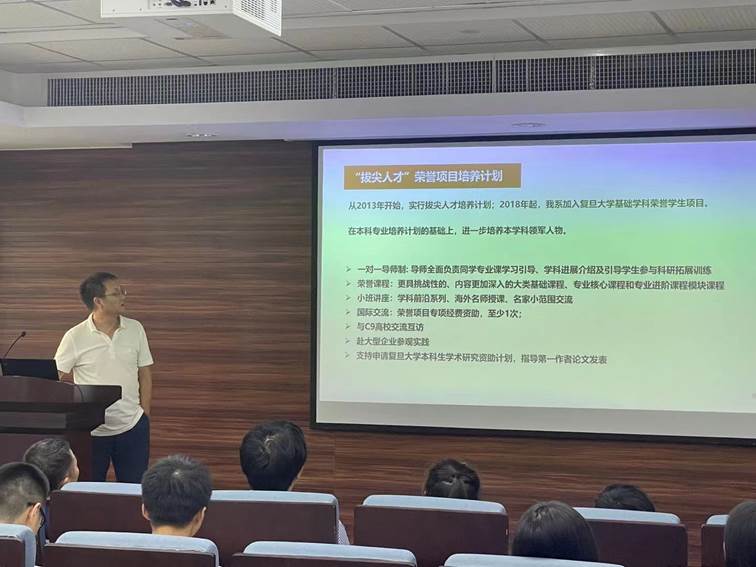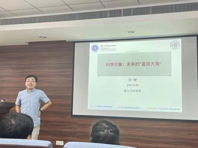 周平老师提出学习方面要自由自主学习,深入研究自己感兴趣的课题,发掘自己的无限潜力。生活方面要做到独立,要锻炼动手能力,要充分享受复旦的丰富师资、文献资源,并担起复旦人应有的责任。潘翔城老师以高分子合成改变世界为题,用三个有趣的小故事将同学们引入高分子材料的有趣研究中,激发了同学们对科学研究的浓厚兴趣。汪莹老师和同学们分享了自己的求学与科研经历,开放的思维与视野、坚持不懈的品格、融会贯通以及解决实际问题的能力都让同学们获益匪浅。孙雪梅老师用炫酷的动画生动地展示了现有的研究成果——柔性纤维生物电子器件在脑科学、智能穿戴等方面的巨大研究潜力。导师长刘一新老师就“科学计算:未来的星辰大海”讲述了科学计算在科研领域的巨大作用,鼓励同学们踊跃参与到科学计算的星辰大海中。