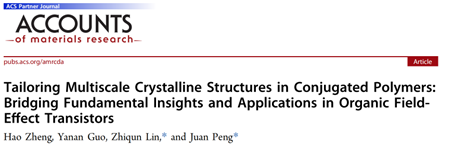 相关成果以Tailoring Multiscale Crystalline Structures in Conjugated Polymers: Bridging Fundamental Insights and Applications in Organic Field-Effect Transistors Compensating为题发表于Acc. Mater. Res.上。成人tv 彭娟教授和新加坡国立大学林志群教授为论文共同通讯作者,2023级博士生郑浩为第一作者。该工作得到国家自然科学基金、上海市科委、成人tv 、上海同步辐射光源的支持。