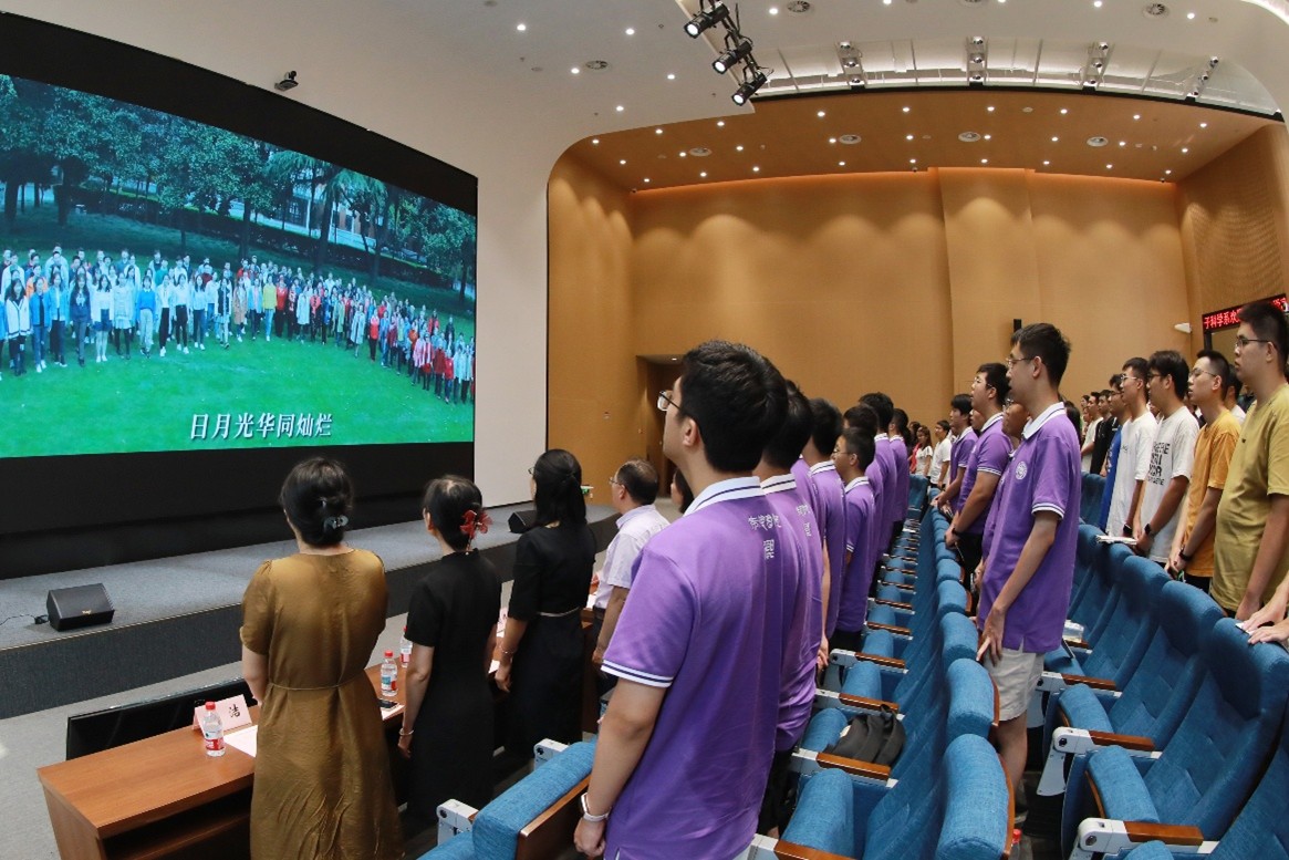 最后,大家全体起立,齐唱校歌,大会在庄严神圣的校歌声中落下帷幕。
