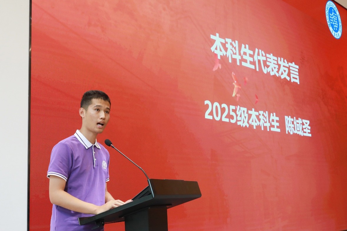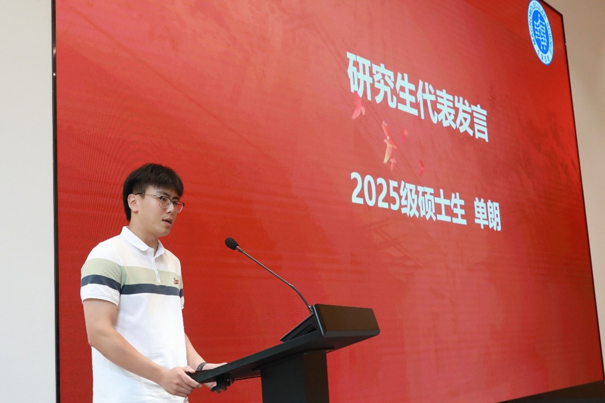 接下来,2025级硕士生单朗、2025级本科生陈域圣同学分别作为新生代表发言。他们表达了进入成人tv 学习的喜悦,以及对于未来生活和科研的憧憬,激励同学们明确目标,奋发向上,勇于探索,最终成就辉煌。