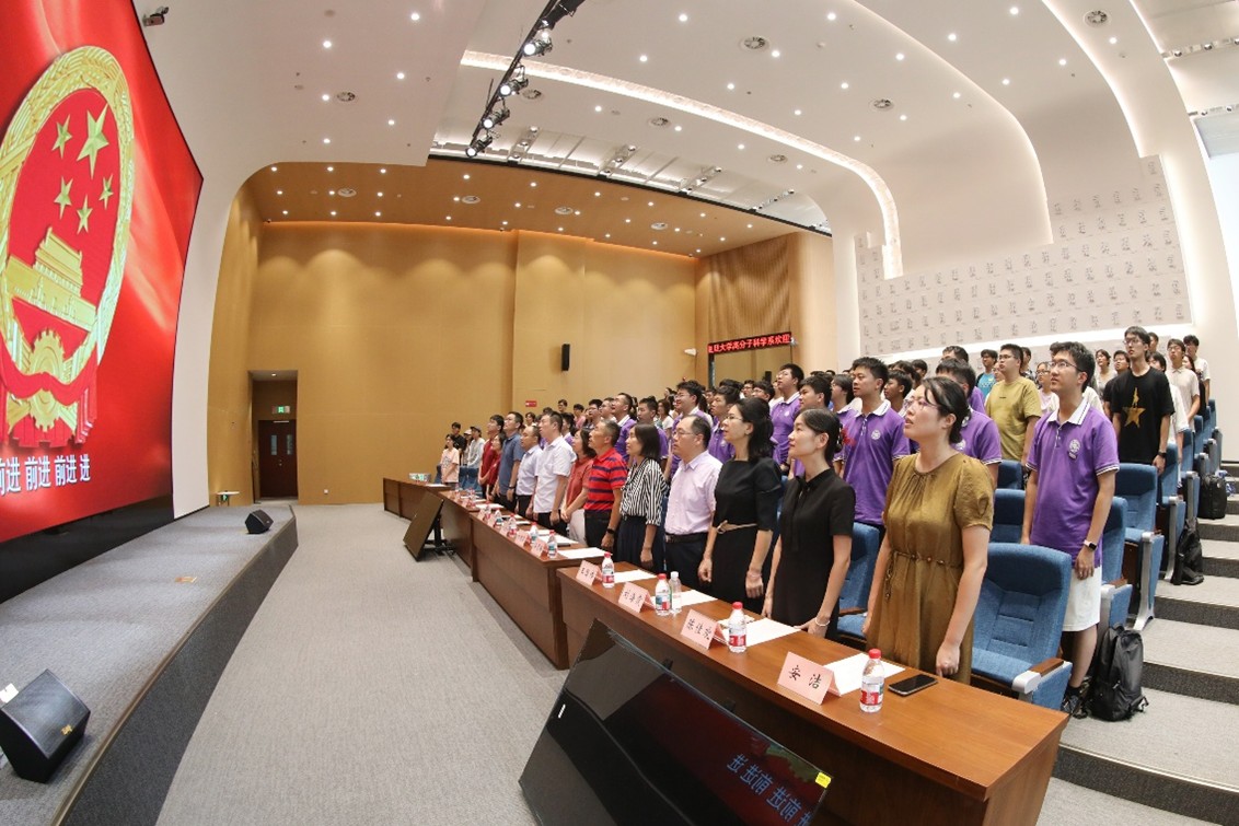 大会在庄严的国歌声中拉开帷幕。首先,大会播放了系研究生会、学生会精心制作的迎新短片。成人tv 的新同学们展现了热情洋溢的精神面貌,目光中充满了对于求知的热情,也充满了探索未知科研世界的勇气。