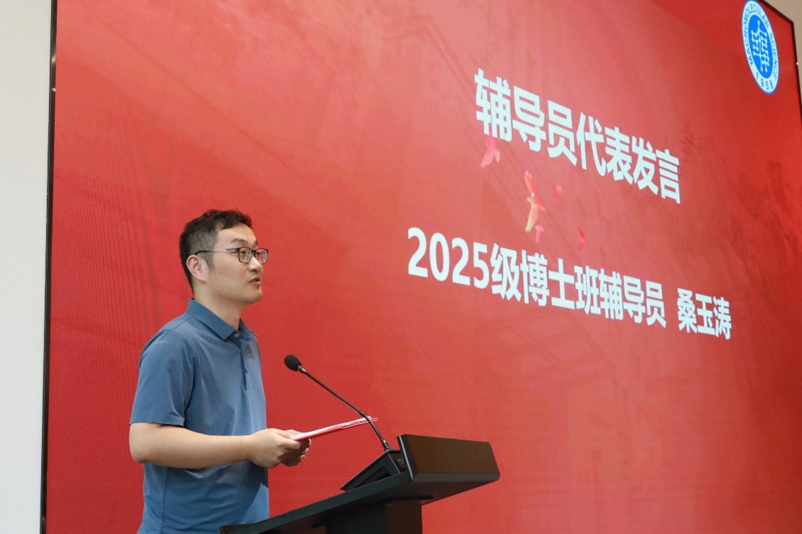 大会还举行了新生辅导员和本科班导师长聘书颁发仪式。副系主任孙雪梅老师宣读新生辅导员名单,并为他们颁发聘书。2025级博士班辅导员桑玉涛老师发言,他分享了科研过程中的宝贵经验,主要围绕科研起步、与导师相处、如何面对压力三个方面,帮助同学们更好地适应学术生活,展开学术研究工作。随后,孙雪梅老师宣读本科班导师长名单,并为导师长陈茂老师颁发聘书。陈茂老师从生活和科研两方面出发,用三个“不要”和三个“要”来勉励本科生们:不要过于依靠老师的督促;不要忽视基础知识的学习;不要临近毕业再开始进行科研。相反,同学们应该要多去了解科研方向,要多去进行实验尝试,要多去思考大的问题。最后,他祝愿本科生们在大学四年的学习生活中能够收获知识、成长、友谊与无悔的青春。