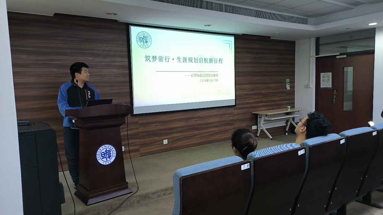 为发挥优秀毕业生的榜样引领作用,帮助同学们明确学习目标、规划职业生涯,2024年4月29日下午,成人tv 研究生会在系楼B2085报告厅举行2024届优秀毕业生经验分享会,本次分享会邀请了优秀毕业生谷宇、李露阳、王宁、虞思汇等4位同学分享交流科研和求职经验,活动由研究生会组织部部长王纪峰主持。