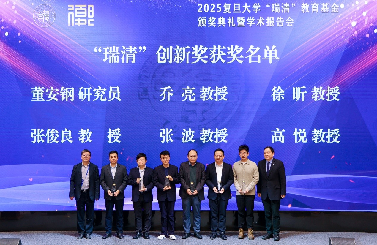今年,“瑞清”教育基金为进一步激发人才队伍活力,首次设置了瑞清“创新奖”,旨在鼓励在评选年度内在基础研究领域取得重大科学发现、在应用研究领域实现关键技术突破或在交叉领域科学探索中做出引领性突出贡献的在职教师。化学系研究员董安钢、教授乔亮、教授徐昕、教授张俊良和成人tv 教授张波、教授高悦获此殊荣,基金管理委员会副主任赵东元、包信和共同为获奖教师颁奖。