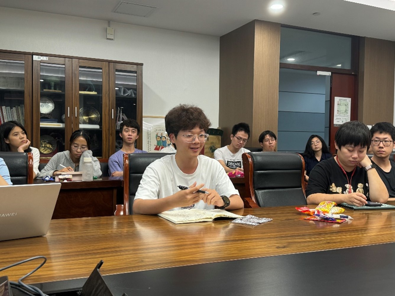在冯雪岩老师的精彩分享之后,沙龙进入了研讨环节。同学们结合自身的研究方向和科研经历,与冯老师进行了深入的交流和探讨。黄硕同学率先发言,向大家分享了自己在科研过程中遇到的一些挑战与收获。黄硕提到,在刚进入科研领域时,面对复杂的实验操作和深奥的理论知识,他也曾感到迷茫和挫败。但正是通过不断地阅读文献、向导师和师兄师姐请教,以及反复的实验尝试,他逐渐找到了自己的研究方向和兴趣点。他强调了坚持与毅力在科研中的重要性,激励大家在遇到困难时不要轻易放弃,而是要勇于探索、持之以恒。其余同学纷纷积极响应。