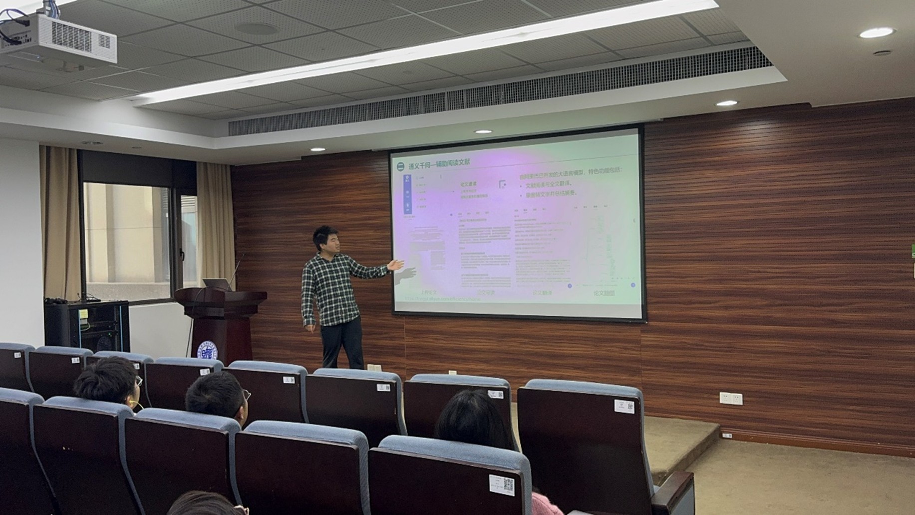 在班会的下半场,成人tv 研究生会主席王纪峰同学带来了题为《AI助力科研——开启智能研究的新篇章》的精彩报告。凭借丰富的科研经验和前沿视野,王纪峰生动展现了人工智能在科研领域的无限潜力与广阔应用蓝图。他详细介绍了AI在科研文献检索、高效数据处理、精准模型构建及创新实验设计等方面的显著优势,并通过国内外多个成功案例,为同学们勾勒出一幅AI赋能科研的壮丽图景。