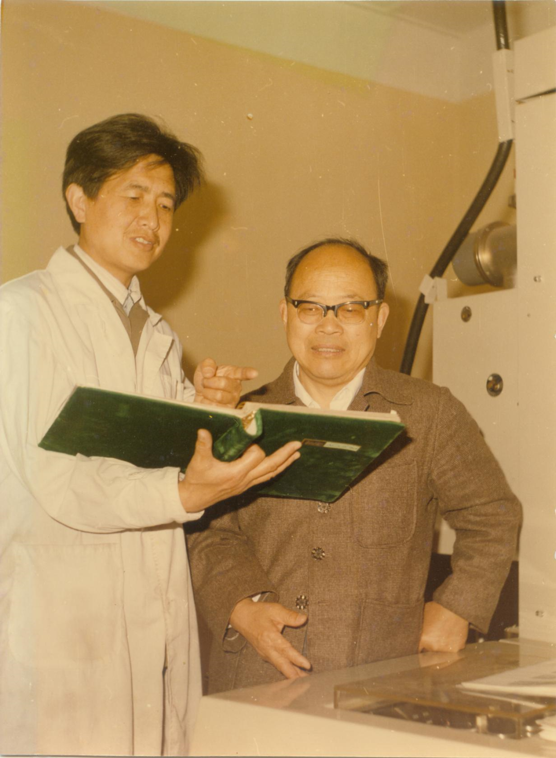 1980年代于同隐先生(右)与江明(左)在跃进楼实验室