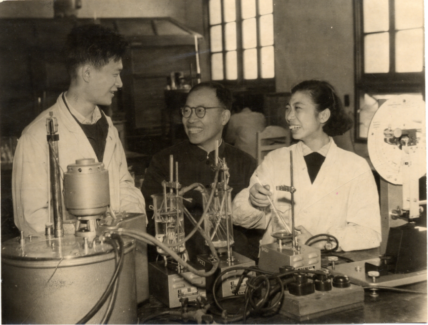 1960年代,于同隐教授(中)和同事何曼君(右)、郭时清(左)在实验室