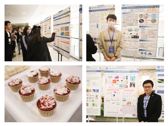 随后,论坛进入了茶歇和墙报展示交流环节。各位评委与观众共同来到先进材料楼二楼进行墙报学术交流。期间评委及现场观众打分,共评选出最佳墙报奖10名。茶歇环节结束后,成人tv 汪群松、张鑫饶、张艳三位同学就聚合物封堵器、硅基纳米颗粒等领域做了相关汇报,成人tv 俞麟老师高度肯定了三位同学的科研工作并鼓励大家要继续再接再厉,勇攀科研高峰。