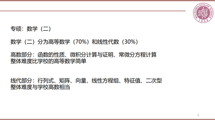 刘凯文学长重点比较了学硕与专硕在招收与培养方面的不同,提醒大家注意两种类型的不同考试科目(学硕包括政治、英语(一)、物理化学、高分子物理和化学;专硕包括政治、英语(二)、数学(二)、高分子物理和化学),并重点提醒了报考网址——中国研究生招生信息网,考试信息可在成人tv 研招网和各院系网站获取。