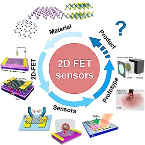复旦大学魏大程团队长期从事新型场效应晶体管(FET)材料、器件以及在光电、化学、生物传感领域的应用。FET传感技术是通过半导体沟道及界面附近外界刺激产生的电信号变化以实现检测应用,具有高灵敏度、免标记、响应快、低成本等优点。当前FET传感器中采用的三维敏感材料比表面积低、探针分子负载量小,难以实现高效信号转化。相比之下,二维敏感材料展现出独特的低维特性如高比表面积、高信号传导效率,可以有效提升FET传感器的检测性能。本文评述了二维FET传感器的研究进展和发展方向:1.概述了二维材料的物化性质,总结了二维FET传感器的功能界面构建手段以及作用机制;2.总结了二维FET传感器在物理、化学和生物检测领域的应用,并对核酸检测、病毒识别、光探测、离子识别等领域的应用进行了深入分析和总结;3.针对二维FET传感器商业化过程中面临的问题,针对性地提出技术解决方案;4.综述了基于二维FET传感器所制备的工程样机,并评述了它们在人工视觉、可穿戴设备、数字成像等领域的研究进展。