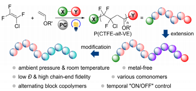 图1 三氟氯乙烯与乙烯基醚的有机光催化可控自由基交替共聚