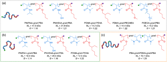 图2 合成具有不同梯度变化趋势和化学组成的共聚物。