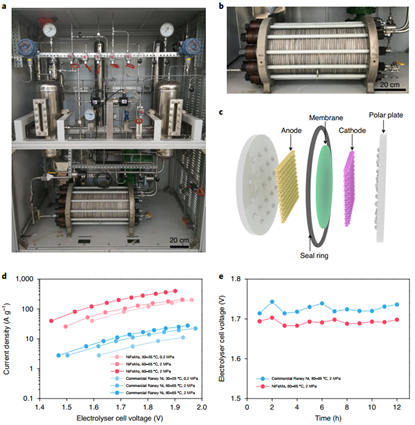 要点3. 将SrRuIr氧化物催化剂应用于质子交换膜电解槽,其在1 A cm-2时可获得1.50 V的低全电池电压。