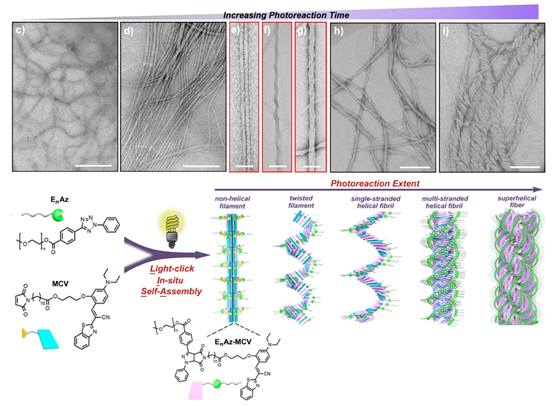 这一成果近期发表在Macromolecules上(详见Liang Chen, Xuefeng Li, and Qiang Yan*. Light-Click In Situ Self-Assembly of Superhelical Nanofibers and Their Helicity Hierarchy Control. Macromolecules 2021, doi.org/10.1021/acs.macromol.1c00197.),成人tv 、聚合物分子工程国家重点实验室为第一单位,论文通讯作者是闫强研究员,第一作者为陈亮博士,博士生李雪凤参与了课题研究。论文链接://pubs.acs.org/doi/10.1021/acs.macromol.1c00197