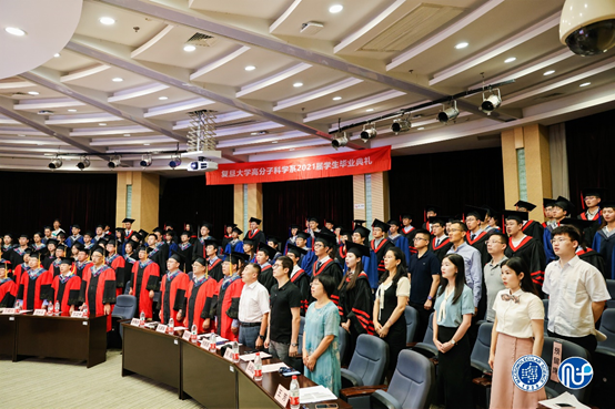 在雄壮的国歌声中,典礼正式开始。在场师生和嘉宾共同观看了2021届毕业生拍摄的毕业纪念短片。短片中,同学们分享了在复旦高分子学习和生活的难忘瞬间与满满收获,表达了对师长的感激和对母校的不舍,更为成人tv 的未来发展送上祝福。