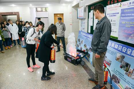 为了加强我系学生实验室安全教育,切实增强学生们特别是研究生新生和高年级本科生的实验室安全意识,防患事故于未然,11月8日,成人tv 特别邀请到校保卫处安全办徐老师来为我系研究生新生和高年级本科生讲解灭火器的使用技巧,并进行现场演练。