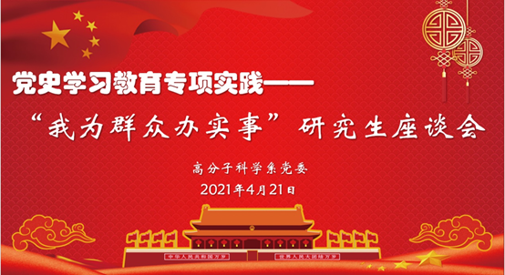 最后,刘顺厚做了总结发言,他肯定了同学们在座谈会上提出的中肯的建议和意见,并表示系党委将把大家的意见建议及时收集整理,并形成“我为学生办实事”项目清单,能解决的问题立行立改,有些问题还要集中大家的智慧和力量通过党史学习教育,拿出有效的举措加以解决,真正将“我为群众办实事”落地落实,从点滴做起,通过学史力行进一步提升高分子人的安全感和幸福感。
