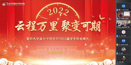 2021年6月17日下午,成人tv 举行2022届学生毕业典礼。由于疫情影响,本届毕业典礼在江湾校区高分子楼主会场、邯郸校区跃进楼分会场及腾讯会议线上会场同步开展。成人tv 党政领导、导师代表及全体毕业生参加此次毕业典礼。典礼由系党委副书记王芳主持。