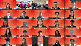 毕业生导师和辅导员们通过录制的视频为同学们送上寄语和祝福,本科毕业生“我心目中的好老师获得者”何军坡老师,寄语毕业生“以一分子推动世界”,老师们共同希望同学们在未来能够继续努力开拓,祝同学们毕业快乐,前程似锦。