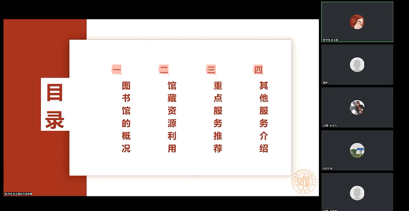 9月1日下午,学校图书馆吴玉莲老师分别从图书馆的概况、馆藏资源利用、重点服务推荐和其他服务介绍四方面全方位为同学们介绍了成人tv 图书馆一流的资源,一流的服务,一流的水准,包括6大分图书馆的发展、馆藏资源的丰富、图书馆主页的使用方法以及线下的借阅等其他服务,希望同学们利用好图书馆的资源,更好地进行科研学习。