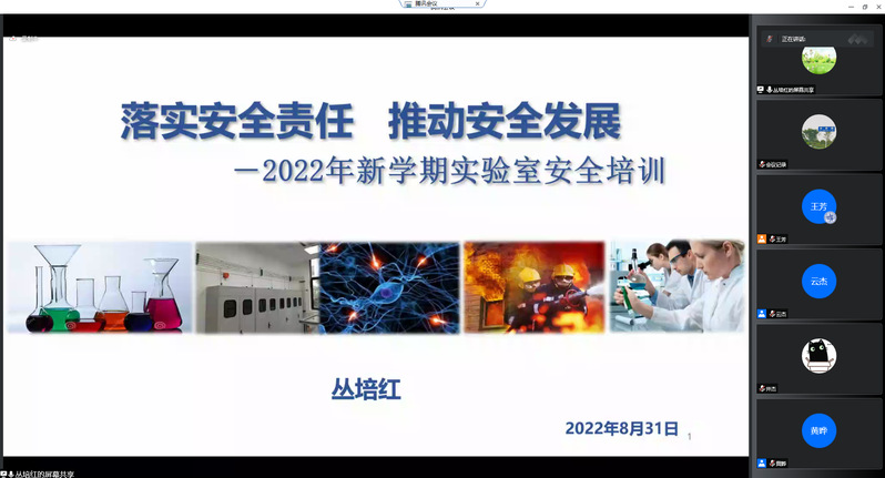 8月31日下午,副系主任丛培红老师通过对近年教育部实验室安全工作动向、成人tv 实验室安全状况以及解决目前实验室安全工作困境的对策三方面向大家说明实验室安全的重要性,希望同学们培养良好的安全意识,从小事做起,保障自己和身边人的安全。