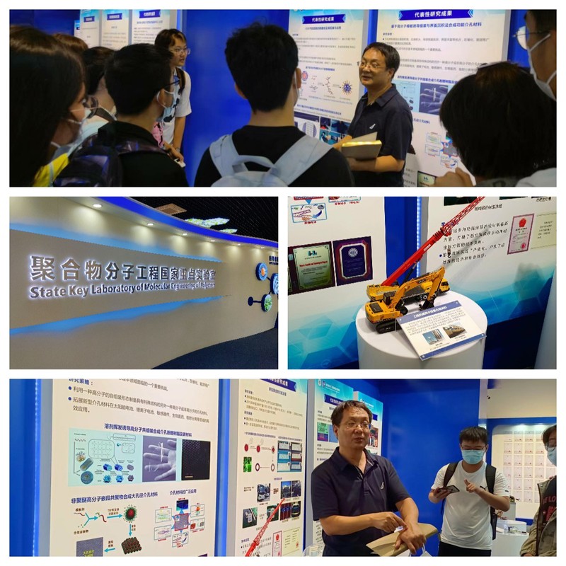 见面会结束后,冯嘉春老师带领本科生参观了聚合物分子工程国家重点实验室展厅,讲述了成人tv 和国家重点实验室发展的历史沿革,重点介绍了国家重点实验室的研究成果与先进技术,以及在瞄准国家重大需求、不断追赶世界最前沿等方面做出的重大贡献。