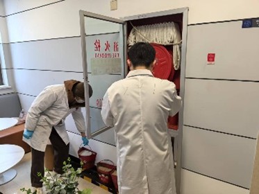 研究生第一支部各位党员同志在系楼多个楼层间巡查消防沙桶和消防设施的完整程度,并记录消防栓等设施的当前状态。大家将地上的消防沙桶放置在指定的警戒线内,向空沙桶中补充消防沙,确保消防沙桶可以在正确的位置被找到,并且状态完好可以被及时使用,“看得见、够得着、用得上”。此外,大家还巡查了楼道内的公共消防设施。在巡查过程中,党员同志们发现了部分地方存在安全隐患的情况,已经及时上报安全责任老师。