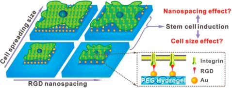 In recent years, stem cell differentiation research becomes frontier area of nature science. But due to multiple factors the basic laws of stem cells and materials interaction are hard to illustrate. Prof. Ding group developed a technique to fabricate RGD micro/nanopattern on nonfouling polyethylene glycol (PEG) background and realized the controlling of cell adhesion at both single cell and single molecular level. Based on this technique the effect of RGD nanospacing on stem cell differentiation was studied at a controlled area level for the first time. The result proved that RGD nanospacing is a regulator of stem cell differentiation. This insight is helpful for guiding designing of new biomaterials for regenerative medicine and also provided a materials technique platform for cell biology research.
