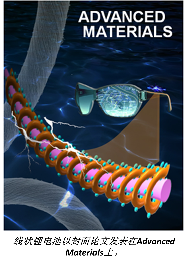 At the same, this group developed a new linear lithium ion battery using oriented carbon nanotube complex fibers as electrode. These results were published in Advanced Materials (IF=13.9). All the referees thought “The authors presented a new concept for both wire-shaped micro-supercapacitor and micro-battery based on the twisting carbon nanotube fibers. The results are very interesting”. This article was also chosen as the cover story. (DOI: 10.1002/adma.201203445)